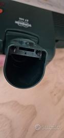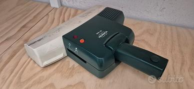 Battitappeto/battimaterasso Vorwerk Folletto modello ET 340. Apparecchio per la pulizia profonda e l'igienizzazione di tappeti, moquette e materassi. Dispone di spazzole rotanti interne che rimuovono lo sporco, la polvere e gli acari dalle fibre. Mostra segni di usura sulla parte bianca anteriore, che è la lamiera inferiore a contatto con il pavimento ma è sostanzialmente integro e perfettamente funzionante.