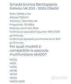 Come da titolo vendo battitappeto EB400 per vari modelli di folletto come da foto allegata.