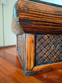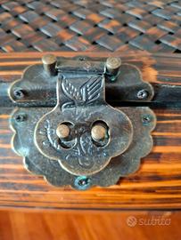 Splendido oggetto realizzato in legno e bambù intrecciato, con chiusura ornamentale a scatto in ottone.