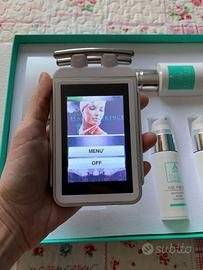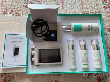 Dispositivo per ionoforesi estetica, dotato di una tecnologia avanzata. Delle dimensioni di un cellulare, permette di usufruire di diversi trattamenti di ionoforesi estetica su tutto il corpo. Le speifiche funzioni vengono attivate tramite il touch screen, molto intuitivo e facile da usare. Lo vendo nella sua confezione originale, completo di accessori e istruzioni.