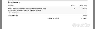 Salve, vendo lavastovigle beko come da foto, acquistata 26/09/24 su amazon pagata 309€ e mai messa in funzione…vendo per cambio cucina. Specifiche: Beko - DVS05024X - Lavastoviglie SLIM 45 cm Libera Installazione, Display LED, 10 Coperti - Acciaio Inox, HxLxP: 85 x 44,8 x 60 cm.