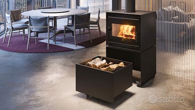 Modulo C: questa pratica soluzione, con carrello porta legna estraibile su ruote, consente di trasportare comodamente la legna dal punto di stoccaggio alla stufa.