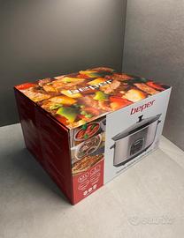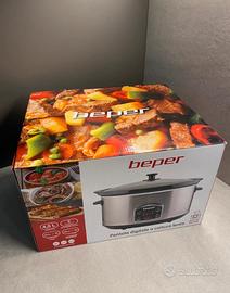 BEPER BC.510 Slow cooker,Pentola digitale per la cottura lenta,4,5 Litri,Acciaio, 3 impostazioni di cottura,Timer programmabile,Pentola interna estraibile,Lavabile in lavastoviglie.