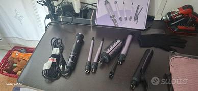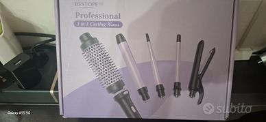 Set Welleneisen 5-in-1:Ferro da arricciamento con accessori intercambiabili: include spazzola termica da 38 mm, piastra lisciante ceramica, ferro conico e 2 arricciacapelli (13 mm/25 mm) – perfetto per tutti gli stili, dalle onde ai capelli lisci. 13 Temperature & Display LED:Il ferro arricciacapelli dispone di un display LED e 13 livelli di temperatura regolabili (100℃–220℃). Trova rapidamente la temperatura ideale per la tua tipologia di capelli, ottenendo uno styling preciso senza danni da calore. Riscaldamento Rapido 30S & Tecnologia a Ioni:La piastra per capelli usa una rivestitura ceramica e un doppio sistema PTC per garantire riscaldamento lampo (30 secondi) e distribuzione uniforme del calore. Inoltre, emette ioni negativi per ridurre l'effetto crespo, eliminare l'elettricità statica e donare lucentezza. Design Sicuro & Pratico:Punta anti-scaldamento, guanto termico e tappetino isolante inclusi per prevenire ustioni e proteggere le superfici. Doppia tensione (120V–240V) ideale per i viaggi, cavo girevole da 2,5 m per massima libertà di movimento. Stili Versatili:Che tu voglia ricci voluminosi, onde morbide, beach waves o capelli perfettamente lisci – questo strumento 5-in-1 rende tutto possibile. Un regalo perfetto per donne che amano lo styling!