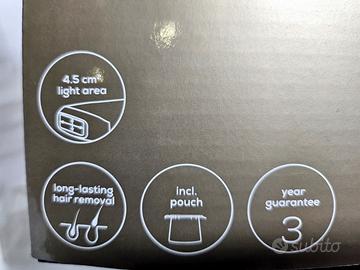 * **Sicurezza avanzata**: sensore 2 in 1 che rileva il contatto con la pelle e il tipo di carnagione, garantendo l'emissione degli impulsi solo quando il dispositivo è posizionato correttamente e la pelle è idonea al trattamento; filtro UV integrato per proteggere la pelle dai raggi dannosi.