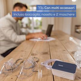 NEBULIZZAZIONE EFFICACE: La tecnologia a compressore DC nebulizza i farmaci in particelle ultrafini che trasportano i principi attivi fino in profondità nei polmoni