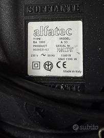 Vendo aspirapolvere a bidone Alfatec "Bidone Aspiratutto", modello A53, tipo BA1000, prodotto in Italia. Funzionante, con vari accessori inclusi. Caratteristiche principali: ►Capacità: 20 litri ►Potenza: 1000W (max 1100W) – 230V / 50Hz ►Tubo flessibile da 350 cm ►Con ruote per spostamento facilitato ►Dotato di filtro in tessuto (già montato) e sacchetto di carta incluso ►Incluso sacchetto con accessori e documentazione originale (istruzioni, filtro C10 Alfatec, ricambi) ►Marchio CE – Made in Italy ►Condizioni: Ottime