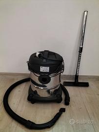 Bidone aspiratutto in acciaio inox. completo di tutti gli accessori e con tubo in acciaio inox.