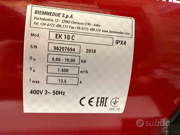Stufa Elettrica Industriale Biemmedue EK 10 C è un generatore di aria calda elettrico professionale/industriale di piccole dimensioni, di struttura simile ai modelli GP, sono alimentati con corrente elettrica. Infatti, in sostituzione del bruciatore ci sono delle resistenze elettriche le quali garantiscono il riscaldamento dell'aria convogliata mediante il ventilatore.