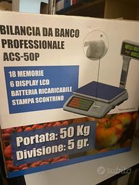 Vendo per inutilizzo, bilancia da banco professionale ACS-50 P portata 50 kg a batteria. Vendonoer inutilizzo. Possibilità di provarla in negozio, e ritiro imediato.