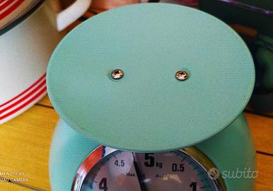 Bilancia da cucina analogica turchese ERNESTO 5 kg- vintage nuova altezza - 22 cm piatto - diametro 24,5 cm - alto 7 cm base diametro - 20,7 cm