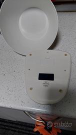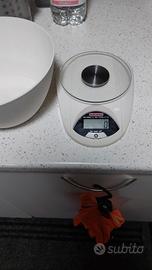 Marca Soehnle, bilancia digitale per alimenti con ciotola colore bianco. La bilancia da cucina digitale serve per la cucina per le diete dove serve precisione in grammi e per la cucina normale, varie scale in once e grammi, 4 unità con precisione 0,1 gr. e tasto tare. Peso massimo di misurazione 5 Kg, funziona perfettamente usata raramente come nuova, con batterie AAA 2 × 1,5 volt.