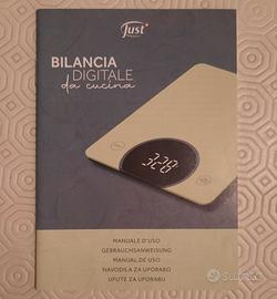 Bilancia digitale da cucina for Just con piatto in vetro temperato, di misure ridotte. Pesa fino a 10kg e permette di selezionare diverse unità di misura. Spegnimento automatico. Contiene 2 batterie. 16x20x2 cm. Perfettamente confezionata. Vendita per inutilizzo.