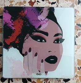 Bilancie pesapersone digitale, in vetro temperato, con diverse immagini di donna.