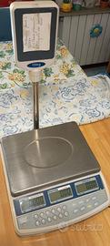 Bilancia con display digitale illuminato e asta a bandiera . Possibilità di memorizzare i prezzi su 10 reparti in PLU . Caratteristiche tecniche in foto. Alimentatore 220 v. Prezzo 90 e.