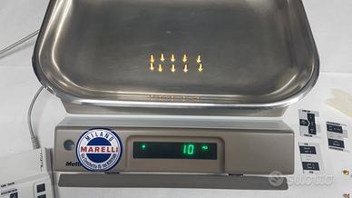 Bilancia elettronica conta pezzi in perfette condizioni Mettler Modello PE 11, molto precisa, utilizzabile anche in magazzino o in ambienti di produzione in qualità di conta pezzi. Fabbricata dalla ditta Mettler Strumenti S.r.l. con la portata massima di 11 Kg., la precisione e' di 1 g. La base e' provvista di piedino regolabile con bolla livellante su cui vi e' un piatto piano 350 x 230 mm In acciaio inox e in accessorio un vassoio asportabile 410 x 310 x 45 mm in acciaio inox e un guscio trasparente asportabile per la protezione dagli schizzi. Cavo di alimentazione di oltre 1 m completa di libretti di istruzioni multilingue.