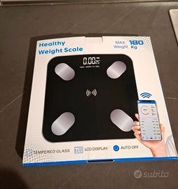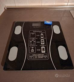 Bilancia che supporta fino a 180 kg di peso, tecnologica e con possibilità di collegare lo smartphone tramite Bluetooth. COLORE nero. Batterie incluse.