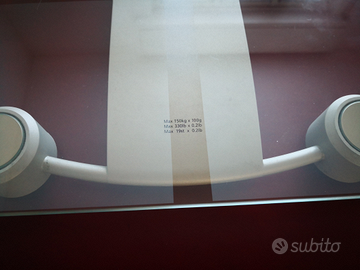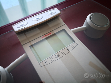 Bilancia pesa persone digitale Soehnle. Portata massima 150 kg. Funziona con due batterie a pastiglia CR2430, queste fornite nuove.