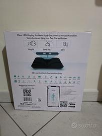 Bilancia Pesapersone Digitale Percentuale di Grasso 8 Elettrodi, Piattaforma Grande, Analizza 28 Elementi della Composizione Corporea, BMI, Bilancia Intelligente da Bagno Sync App, 180 kg