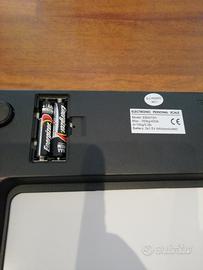 Bilancia pesapersone, come nuova, batterie include. Sportello batterie mancante.