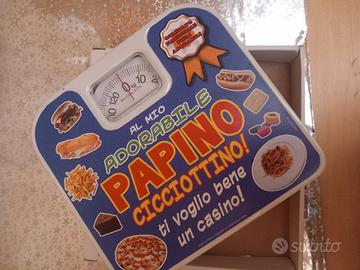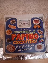 Bilancia pesa persone con motivo festa del papà nuova nella sua scatola . Divertente.