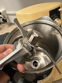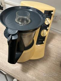 Presenta normali segni di utilizzo dovuti all’età, ma è un elettrodomestico solido e funzionante al 100%. Ottimo come robot da cucina multifunzione Vorwerk, adatto a impastare, tritare, cucinare e cuocere a vapore.