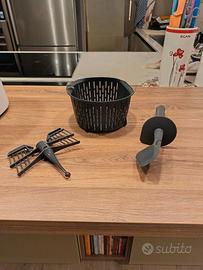 Vendo bimby TM5 (motivo: acquisto nuovo modello). Completo di accessori (Digital key, cestello, farfalla, spatola e varoma). Manutenuto benissimo. Inoltre, in regalo, manuale di ricette e desk in legno per spostare con facilità il Bimby.