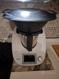 Bimby TM5è un robot da cucina multifunzione evoluto, caratterizzato da undisplay touch screen a colori, modalità di "Cucina Guidata" tramite Bimby Stick, boccale da 2,2 litri e chiusura automatica del coperchio. Offre 12 funzioni (tritare, impastare, cuocere a vapore, ecc.), motore da 500W, temperatura fino a 120°C e bilancia integrata.