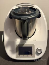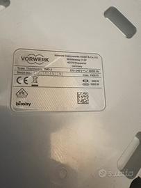 Bimby modello TM5 con boccale da 2L, bilancia integrata ed accessori inclusi; kit varoma completo, farfalla per impastare, cestello, spatola e misurino. Incluso Cook Key per le ricette.