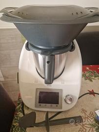 Bimby Tm5 usato ma tenuto bene con I suoi accessori: spatola, farfalla, varoma, cestello interno e cook key. Ha solo un problema, che non pesa in modo preciso perché la bilancia è sballata.