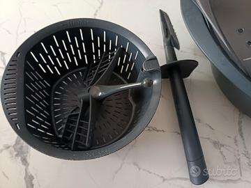 Vendo Bimby Tm5 completo di tutti gli accesori base, due chiavette aggiuntive con ricette e libri ricette. Il coperchio è leggermente sbeccato ma perfettamente funzionante.
