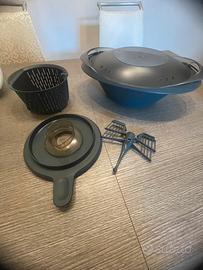 Gli accessori sono il varoma, il cestello e la farfalla. Con l’acquisto regalo anche il libro delle ricette Bimby.