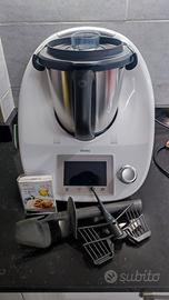 Vendo Bimby tm5 Vorwerk. Usato, ma in buono stato. Completo di tutti gli accessori che vedete in foto, il libro di ricette e la Bimby Stick con i secondi di pesce. Le lame e il misurino sono stati acquistati nuovi nel 2024. Funziona perfettamente, ma bisogna ritarare la bilancia perché a volte non è precisa e la scocca esterna presenta qualche crepa. Possibilità di visionarlo di persona.
