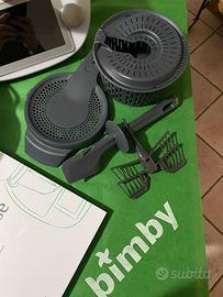 Boccale, Gruppo Coltelli (lame), Cestello, Misurino, Farfalla, Spatola, Paraschizzi e Set Varoma completo (Coperchio, Recipiente e Vassoio)