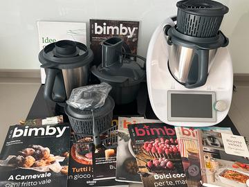Vendo Bimby TM6 , tenuto in maniera maniacale, vendo tutto in blocco , con tutti i suoi accessori in possesso, doppio boccale, doppio cestello di cui uno nuovo ,doppio tappo di cui uno nuovo ancora nel imballo.