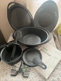 Bimby TM6 preso nel dicembre 2024 con estensione di garanzia per un totale di 5 anni (poco più di 1 anno di vita quindi ancora in garanzia per circa 4 anni) in perfette condizioni. Completo di : - varoma completo - cestello - spatola - farfalla - misurino - coperchio - paraschizzi (per alta temperatura) - accessorio extra per poter agganciare gli accessori (vedere foto) - “cover” in silicone bianco per il pulsante PERFETTAMENTE funzionante Possibilità di poter includere l’affettatutto per un totale di €950