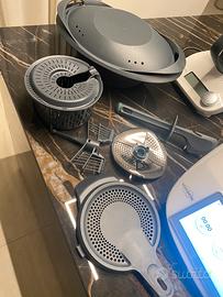 Bimby TM6 con bimby friend, doppio boccale, acquistato nel 2020, in buone condizioni. Completo di tutti gli accessori originali bimby: cestelli per cottura a varoma, coperchio per cottura ad alta temperatura, pela patate/coprilame, mestolo e farfalla.