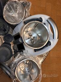 Vendo Bimby Tm6 completo di tutti gli accessori: cestello, spatola, farfalla, varoma, copri lame/pelapatate, para schizzi. Il bimby comprende due boccali completi di cui uno usato ed uno nuovo imballato. Compreso cedo terzo boccale, non completo ma composto da solo boccale. No perditempo, no spedizione. Disponibile per qualsiasi prova.