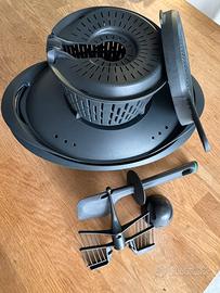 (Cestello, varoma, spatola, farfalla, tappo coperchio e boccale) in più c’è ( sensor, para schizzi, e copri lame per impastare) extra do anche una macchinetta sottovuoto per le cotture a bassa temperatura!