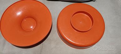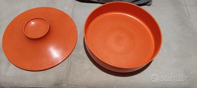 biscottiera "UFO" vintage in plastica arancione.Originariamente disegnata da Luigi Massoni per Guzzini negli anni '70, è stata prodotta per la cioccolateria Venchi di Torino.