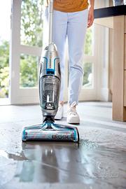 BISSELL CrossWave® Cordless è un rivoluzionario pulitore multisuperficie all-in-one che che aspira, lava e asciuga i pavimenti contemporaneamente. allo stesso tempo. Con la semplice pressione di un pulsante, è possibile passare dalla pulizia dei pavimenti duri all'aspirapolvere pavimenti duri all'aspirapolvere e al lavaggio tappeti, il tutto con un'unica macchina. La potente batteria agli ioni di litio da 26 V garantisce prestazioni costanti durante l'intero processo di l'intero processo di pulizia, godendo la libertà del cordless.