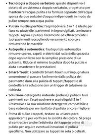 BISSELL Crosswave è il prodotto per la pulizia 3 in 1 multisuperficie pensato per le nostre vite sempre piene d'impegni. Il Crosswave multifunzione aspira, lava ed aiuta ad asciugare i pavimenti con un semplice passaggio che si tratti di piastrelle, pavimenti duri o tappetti. Crosswave effettua tutte le fasi nello stesso passaggio e può essere utilizzato su tutte le superfici di casa. Pulisce diversi tipi di pavimenti in un'unica azione. Un'unica spazzola che toglie lo sporco e lava i pavimenti in maniera efficace e non disperde nuovamente l'acqua sporca sul pavimento. Controlli digitali per un controllo intuitivo e comodo della pulizia. Tecnologia per la rimozione semplice del doppio serbatoio, separa l'acqua pulita e quella sporca per eliminare il bisogno di cambiare l'acqua frequentemente e per assicurare che il pavimento si lavi sempre efficacemente. Grazie ai due separati serbatoi, l’apparecchio lavora sempre con una miscela di acqua pulita e formula detergente.