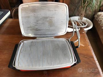 Bistecchiera SICER a basso consumo (550 W) molto versatile, da 2 a 4 bistecche se aperta completamente, oppure da toast se chiusa , da filetto se chiusa, etc. piccola e maneggevole.