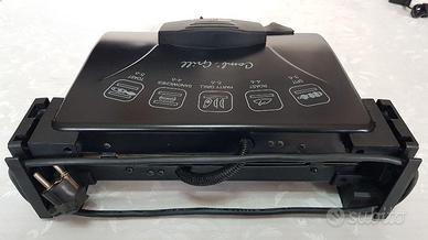 Bistecchiera elettrica da 1900W con termostato regolabile. Apertura a 90° e possibilità di aprirla a 180° per avere un piano di cottura doppio.