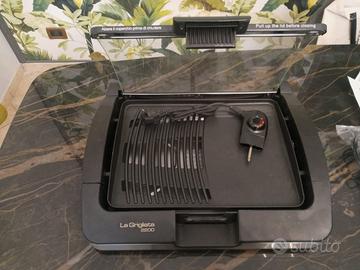 La Grigliata 2200 è una griglia BBQ professionale con dettagli in acciaio inox e coperchio in vetro removibile. Piastra per doppia cottura: liscia come barbeque o rigata come grill.