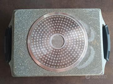 Vendesi bistecchiera grill, marca Bialetti, in ottime condizioni, perfetta per grigliare. - Design rettangolare con manici. - Superficie rigata per grigliare. - Materiale resistente e durevole. Ritiro a mano a Milano oppure a Sesto San Giovanni.