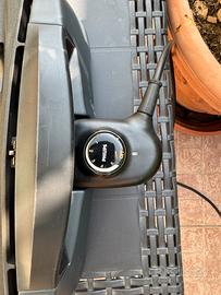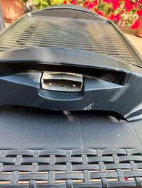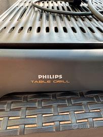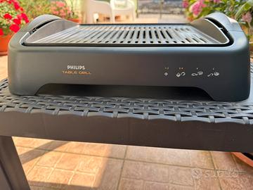 Grill in materiale antiaderente, con recipiente sottostante per raccogliere i grassi e residui di cottura.