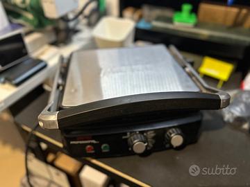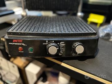 Vendo bistecchiera/piastra elettrica Imetec Professional, utilizzata solo 2 volte, poi riposta nel mobile. Presenta solo 2 leggere ammaccature sulla parte superiore dovute a spostamenti nel tempo, ma è perfettamente funzionante.