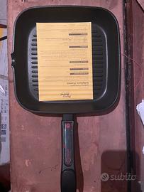 Bistecchiera antiaderente, nera e con la regolazione per la temperatura. Prodotta da TVS. Ancora imballata nella confezione originale.