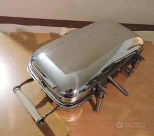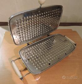 Bistecchiera anni 50/60 in accaio cromato con alcuni segni dovuti dal tempo...pomello e maniglia in bachelite filo e presa di alimentazione originali dell'epoca, usata quasi niente.